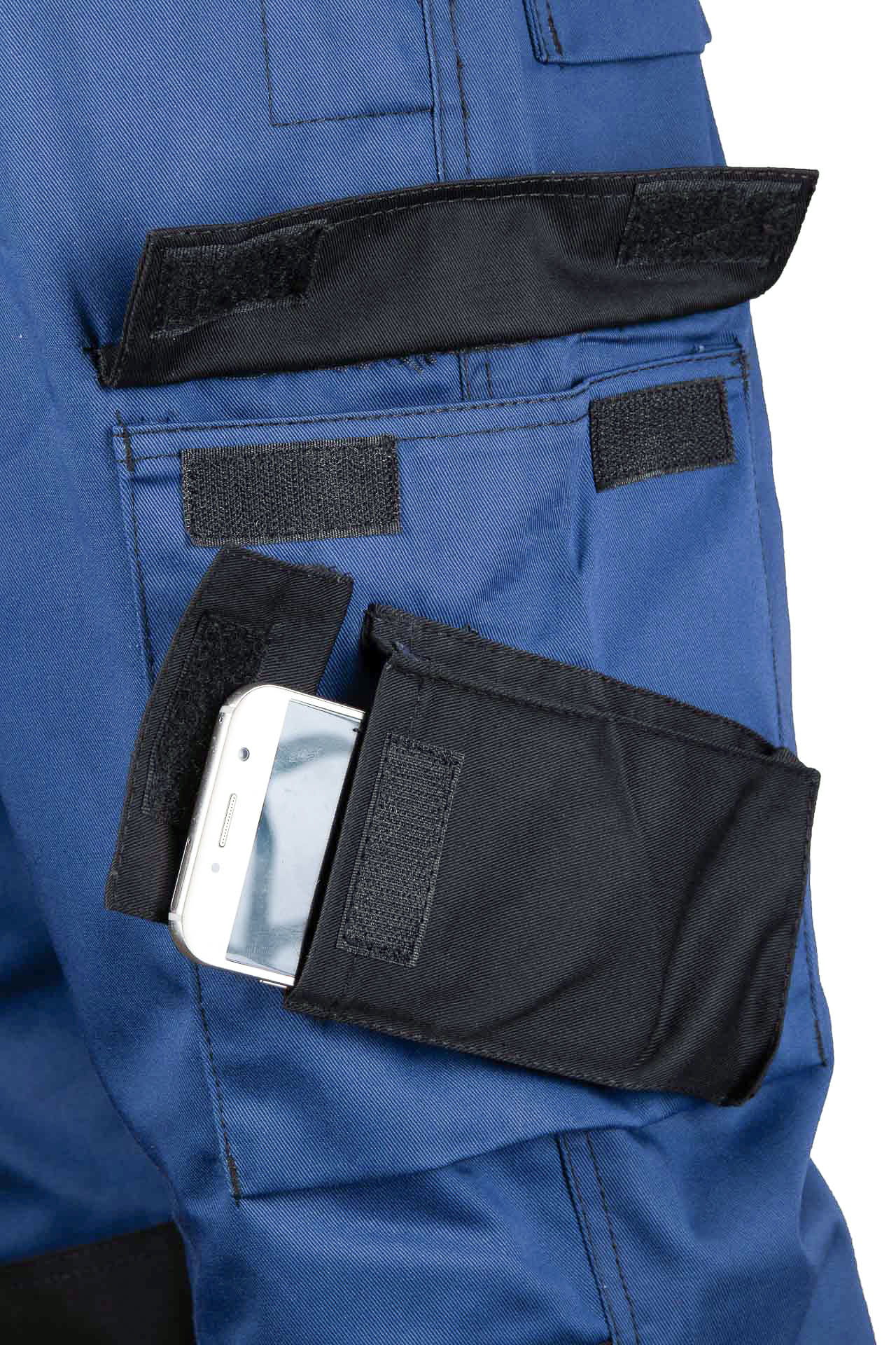 Ogrodniczki oferują rozbudowany zestaw kieszeni, który zwiększa funkcjonalność. Dwie kieszenie tylne, dwie kieszenie boczne oraz wzmocnione kieszenie zapinane na rzep ułatwiają przechowywanie narzędzi. Dodatkowo przewidziano kieszeń na telefon, dwie kieszonki na długopisy, kieszeń na dokumenty oraz kieszeń na miarkę. Ergonomiczna kieszeń na nakolanniki wykonana z CORDURY poprawia ochronę, gdy praca wymaga częstego klękania.