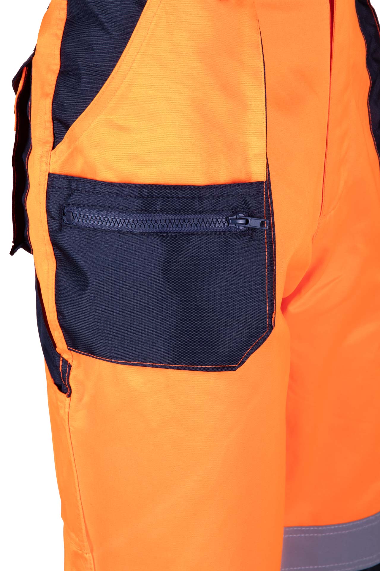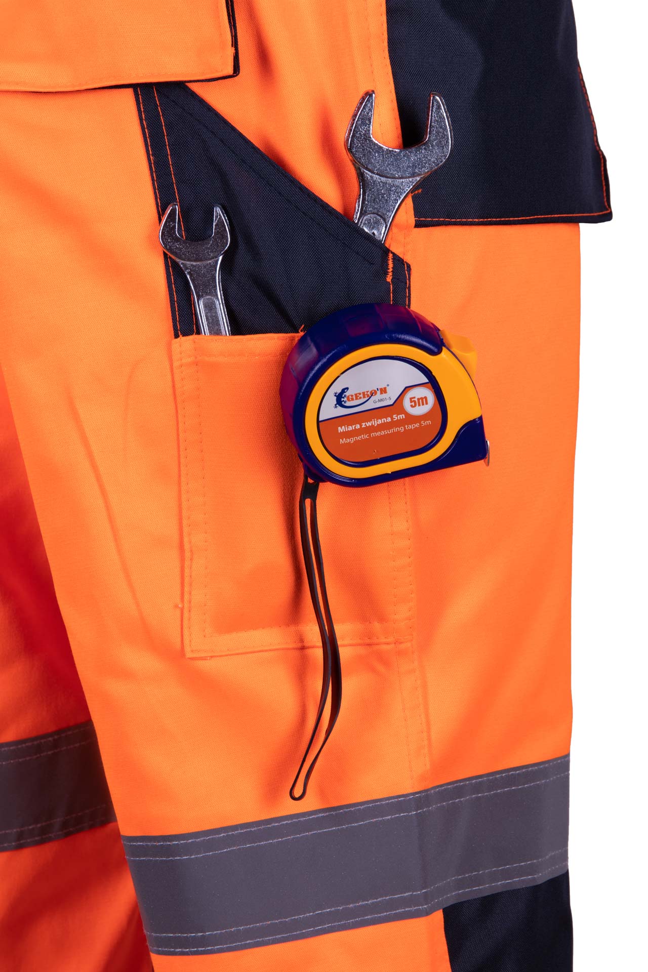 Kieszenie: kieszeń na zamek, dwie kieszenie w tylnej części spodni, zapinane na rzepy, przestrzenne kieszenie, dwie kieszenie boczne, kieszeń na dokumenty, kieszeń na miarę „metrówkę”, ergonomiczna kieszeń na nakolanniki wykonana z OXFORDU