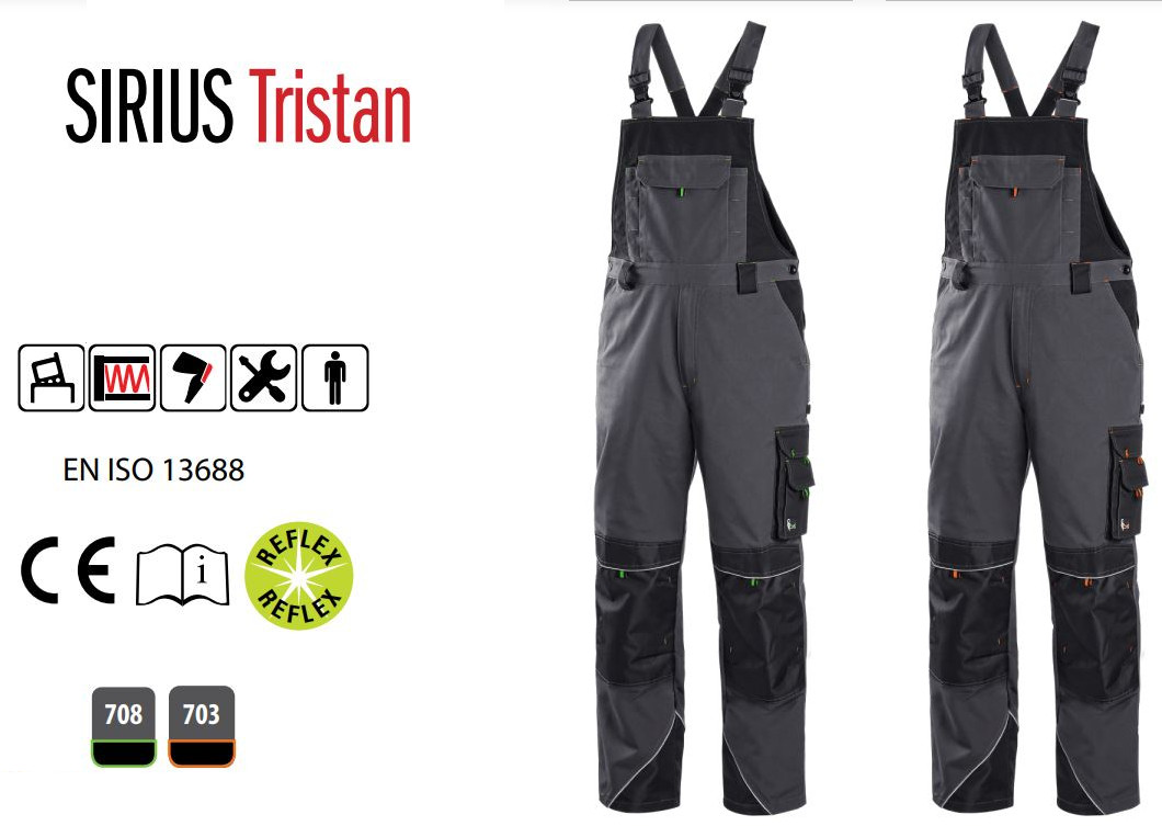Kieszeń na piersi z patką, pas ze szlufkami na pasek, z tyłu guma z guzikiem do dostosowania rozmiaru, kieszenie klinowe z przodu, kieszenie wielofunkcyjne z obu stron, kolana wzmocnione 600D poliestrem z możliwością włożenia nakolanników, dwie kieszenie z patkami, brzeg nogawek wzmocniony poliesterem 600D, szelki z gumą z tyłu, elementy odblaskowe. Zalecane zastosowanie: budownictwo, inżynieria, przemysł lekki, przemysł samochodowy, logistyka, magazyn, spedycja, autoserwisy, utrzymanie, montaż, rolnictwo, ogród, hobby.