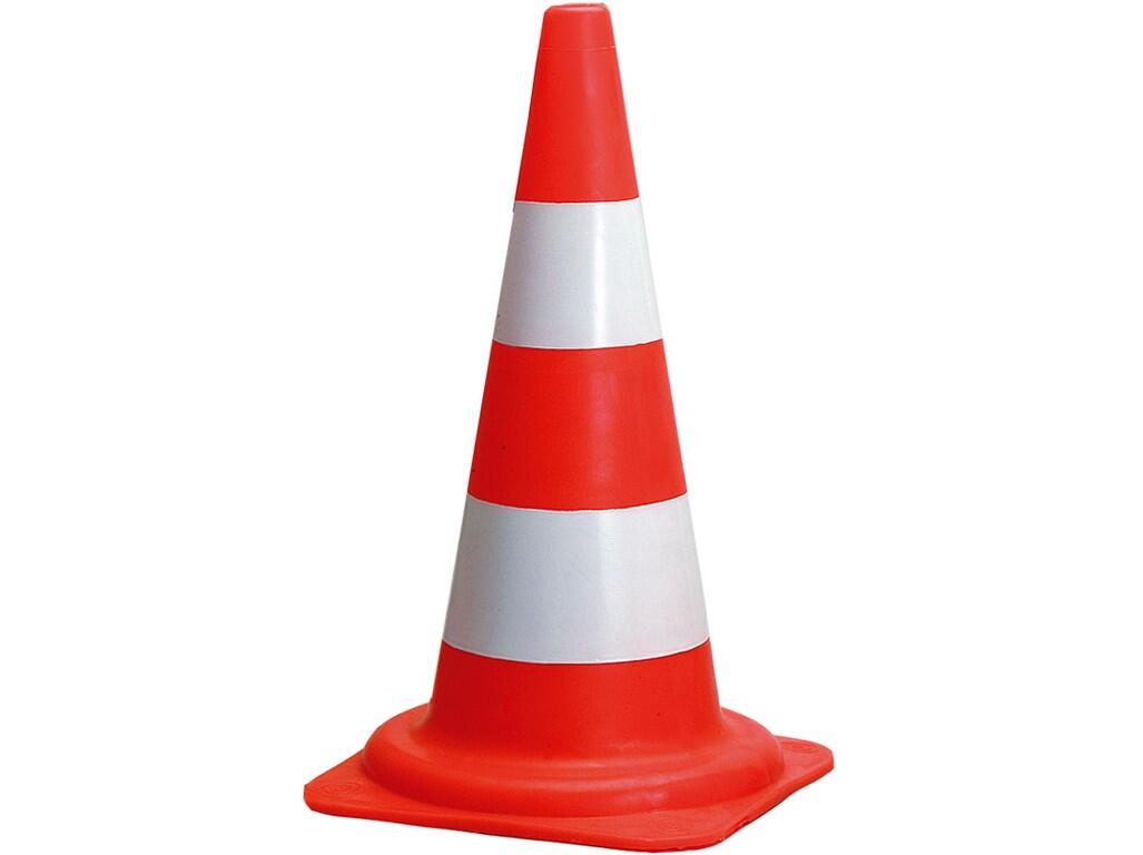 Czerwony z białym pasem. Wysokość: 54 cm, rozmiary podstawy: 29 x 29 cm, średnica górnej części: 4 cm