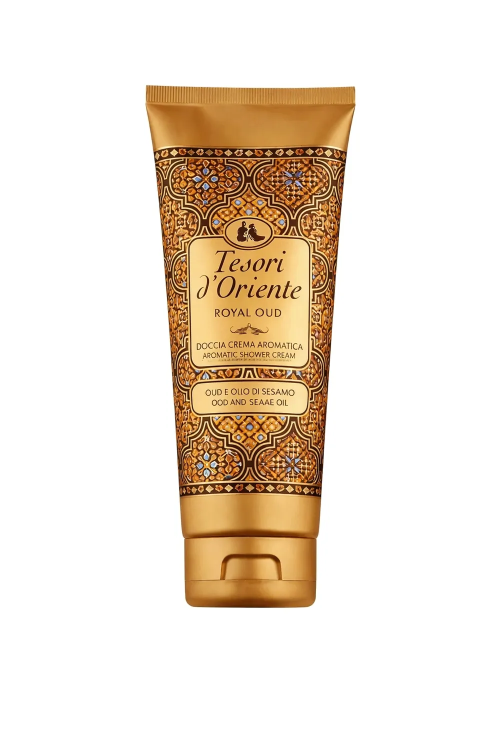 Tesori d'Oriente Kremowy Żel pod Prysznic Royal Oud to luksusowa pielęgnacja inspirowana orientem. Delikatnie oczyszcza skórę, otulając ją intensywnym i eleganckim aromatem drewna oud i bursztynu.