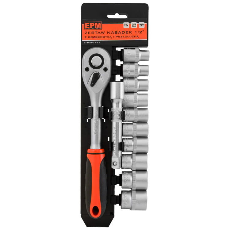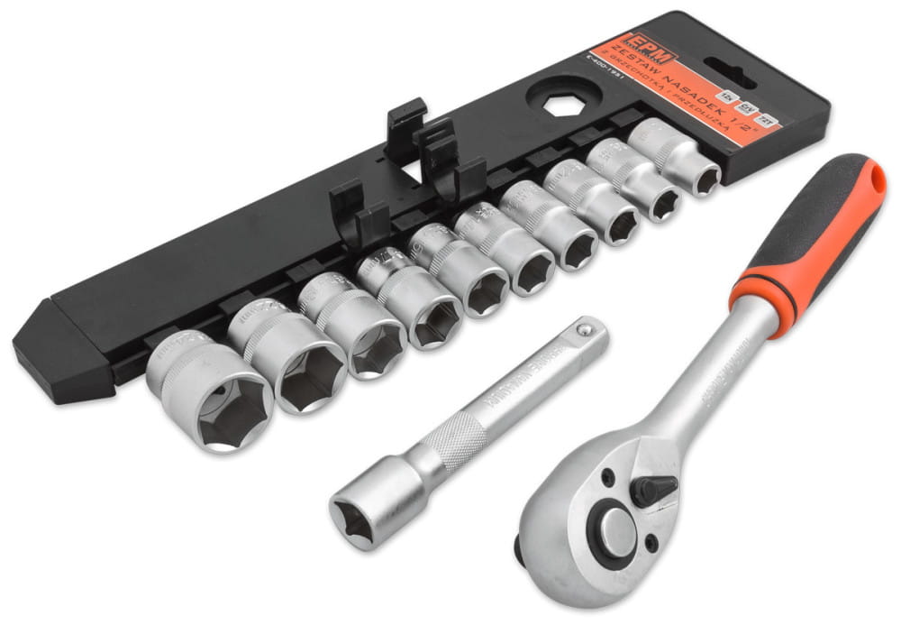 Zestaw nasadek 1/2" z grzechotką i przedłużką 12 szt.