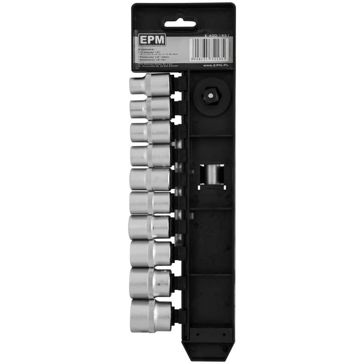 - 10 x nasadka ½” : 10, 11, 12, 13, 14, 15, 17, 19, 22, 24 MM